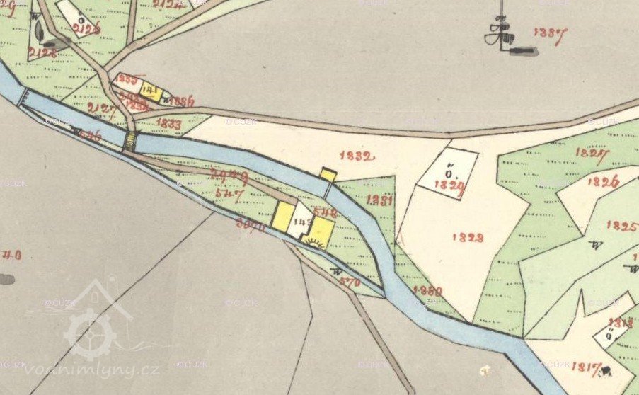 PopisV r. 1930 zde bylo 1 kolo na svrchní vodu, průtok 0,115 m3/s, spád 3,5 m, výkon 3,5 k.