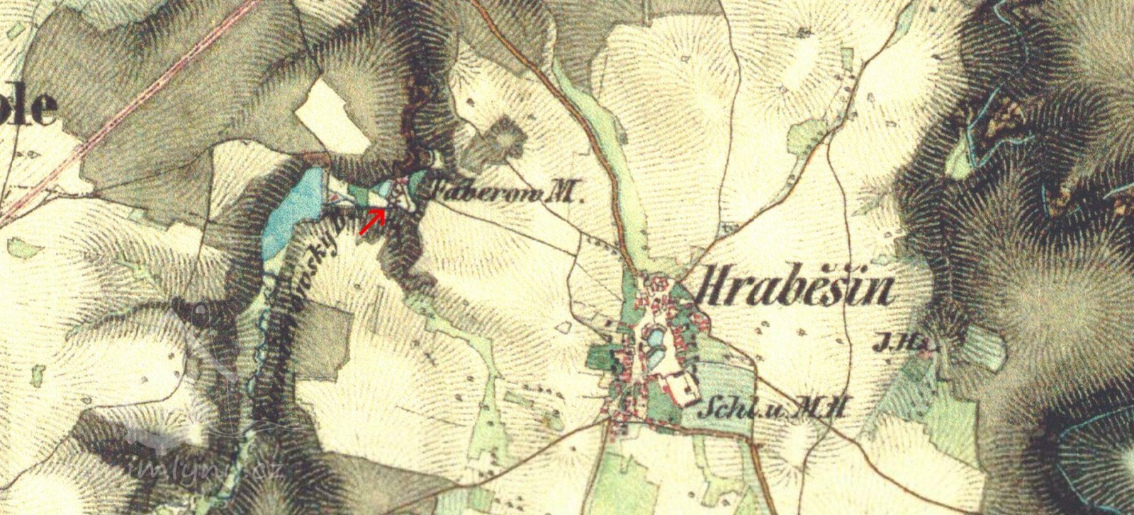 Zbytky mlýna se nacházejí 1km vzdušnou čarou od centra obce Hraběšín