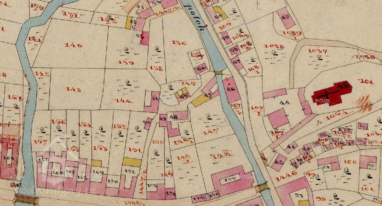 V roce 1826 mlýn vlastní Josef Jarošek, mlýn má čp. 69, na mapě jsou znázorněna tři kola, tj. mlýn měl zřejmě tři složení.