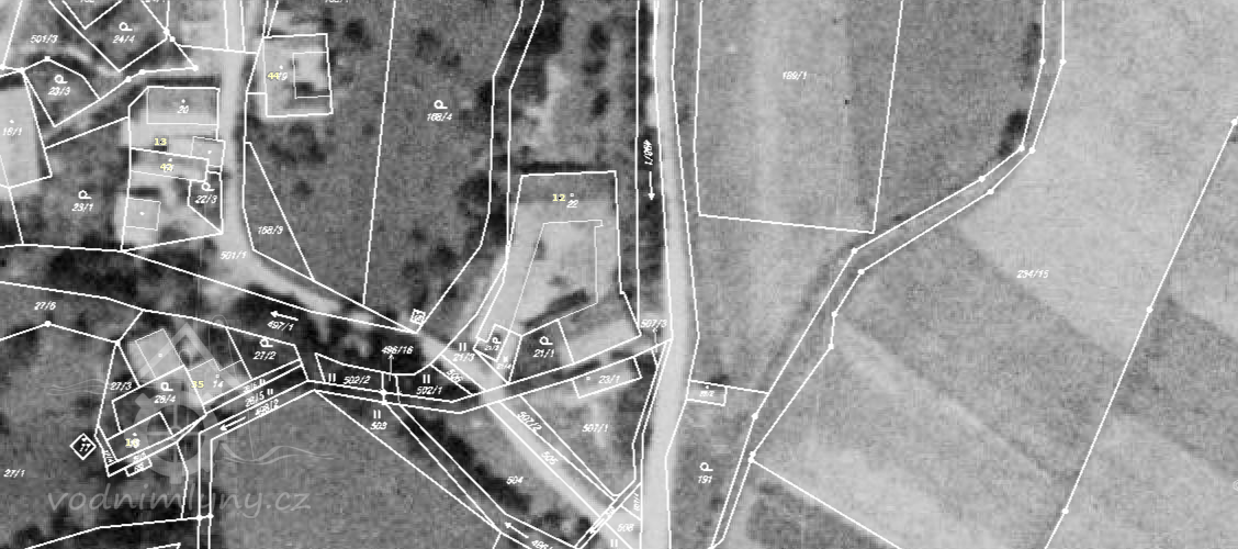 PopisV roce 1930 pohání mlýn a pilu dvě kola na svrchní vodu s průtokem 0.075 a 0.109 m3/s, spádem 4.4 a 4.8 m o výkonu 7.3 HP.