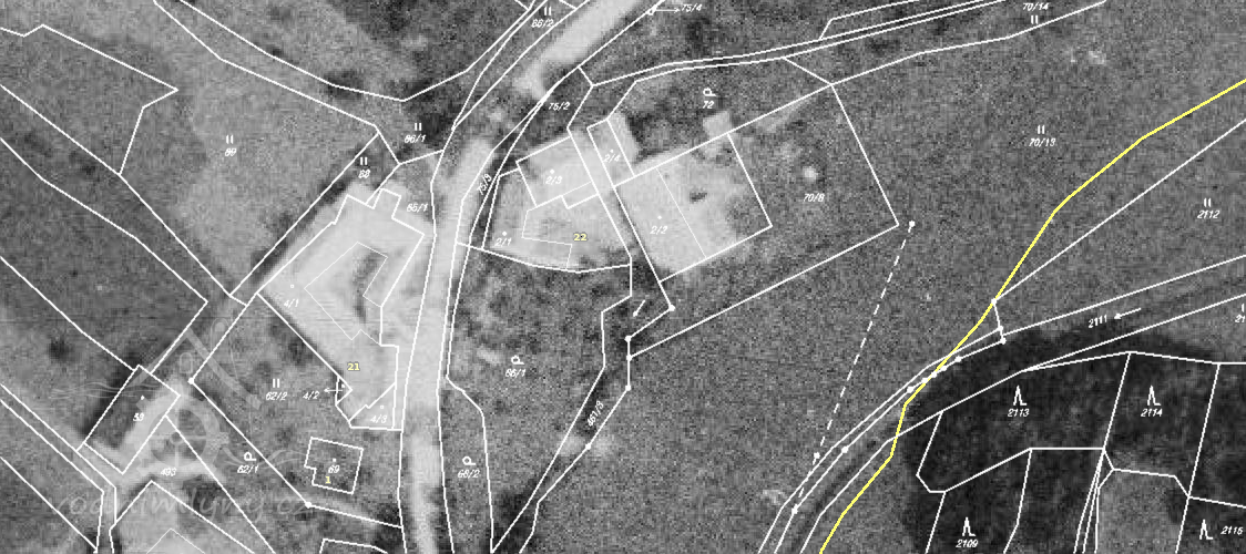 V zápise z let 1656 - 1678 byla obec již očíslovaná a oba mlýny čp. 22, i čp. 23 jsou uvedeny jako panské.