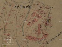 13.7.1929: Na potoce Ještědském v katastru obce Starý Dub jest u obecní cesty pevnbý jez z rovnaných kamenů na sucho s dřevěnou kostrou o délce přepadové hrany 6,45 m. Do vlastního náhonu na vodní dílo čp. 13 v Českém Dubu teče voda dřevěným satvítkem o světlosti 1,30 m. Na koruně jezu jsou osazeny v poslední době nové dva trámce na místo jednoho starého, který byl pro hnití vyměněn. Původní výše jezu není vodoprávně známa.