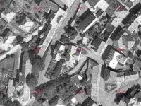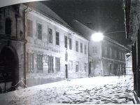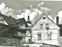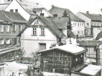 Prostor za hotelem Koruna odděloval od Kostelní ulice dvoumetrový zděný plot. Do dvora se vjíždělo branou z kovové mříže situovanou hned za obvodovou zdí hotelu. Přístavba s kuchyní ještě tenkrát neexistovala.