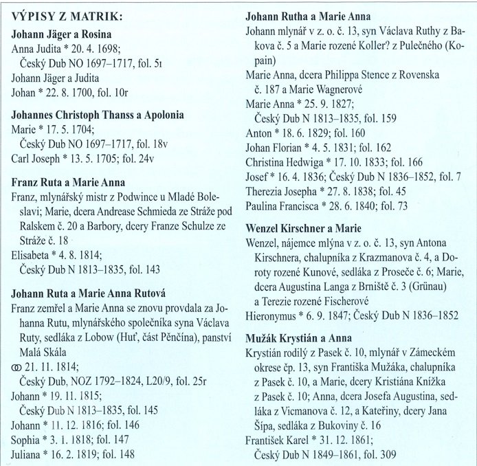 Pravděpodobně v roce 1816 se majitelem stal František Ruta za 6 000 zlatých v bankocetlích. Do Českého Dubu přišel z velkého mlýna na Jizeře u Vince za Mladou Boleslaví. S manželkou Marií měl dceru Elisabetu. František Ruta brzy zemřel a ovdovělá Marie se brzy znovu provdala, a to za mlynářského společníka Jana Rutu z Huti na panství Malá Skála.