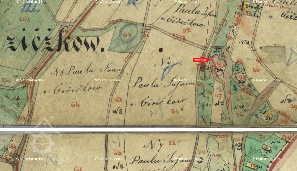 V roce 1789 se dochoval zápis o koupi domu v  Jiříčkově s čp. 2. Tehdy jej koupil Václav Pokorný od Jana Stejskala za 18 zlatých. Dalším majitelem je od roku 1808 František Rozkovec, který dům koupil za 90 zlatých. V těchto zápisech však není zmínka o mlýnu.