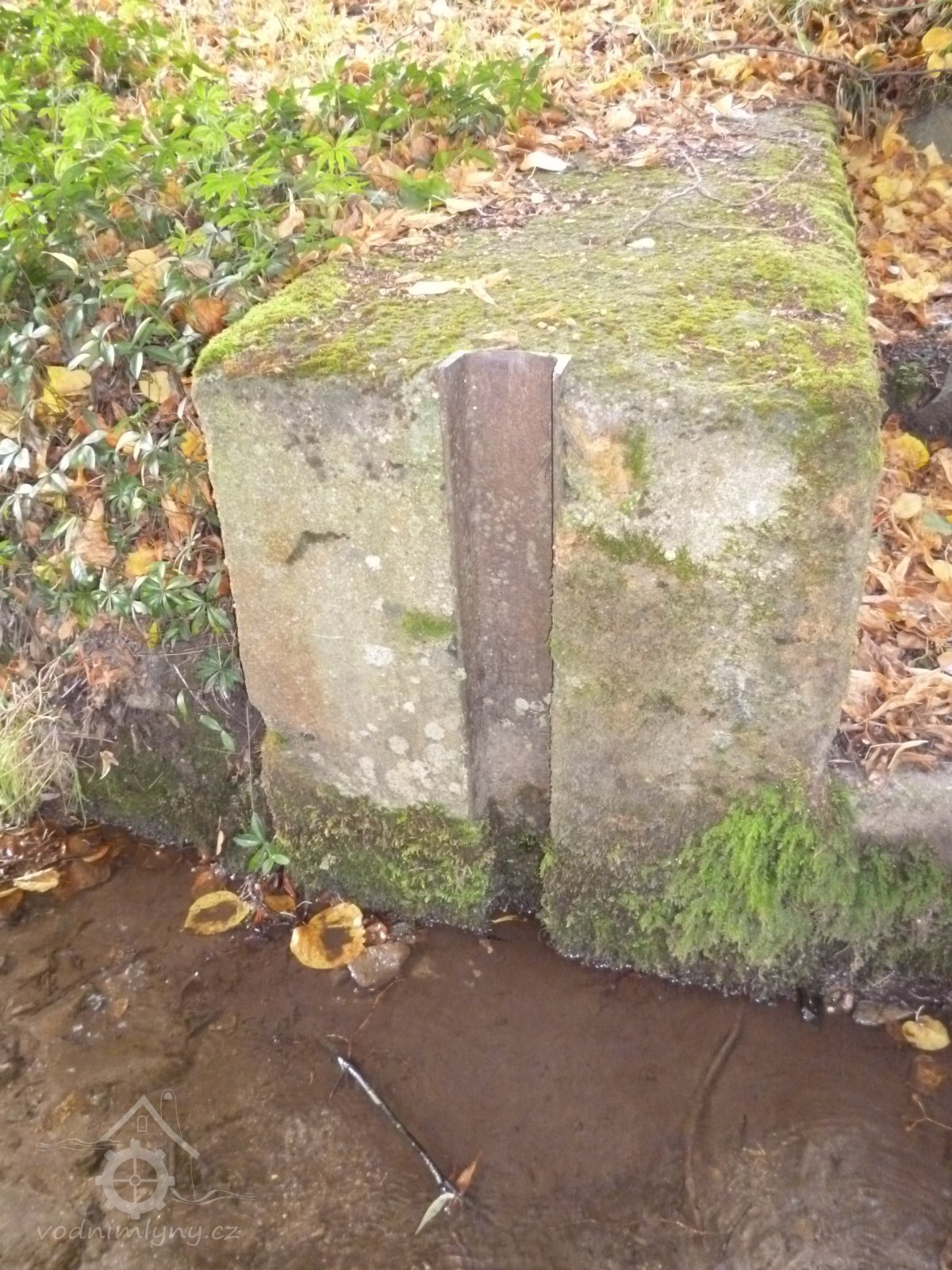 Asi 200 m nad mlýnem byl malý rybník, pod dřevěným stavidlem hráze rybníka začínal náhon. Náhon tvořil kamenný žlab odbočující vlevo z koryta potoka, směřoval ve svahu nad cestou k dnešnímu domu čp. 18 a před ním prudce zatáčel doprava. Přes cestu vedly vodu ve výšce dřevěné vantroky, pod nimiž se dalo procházet. Vantroky směřovaly k návodní straně mlýna a na vodní kolo. Odpadní voda odtékala zpět do potoka.