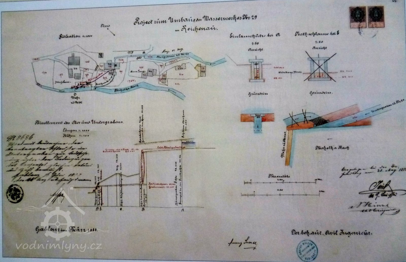 Ke konci 19. století byla pro nedostatek vody a zchátralost zbourána pila patřící ke mlýnu. Měla místní název „Brettschneidermühle“. Na plánu pro přestavbu mlýna čp. 29 z roku 1888 již pila není vyobrazena. Plán vypracoval civilní inženýr Gustav Müller z Jablonce nad Nisou. Tehdy mělo dojít ke zvětšení průměru vodního kola z 4,75 m na 5,45 m a ke zvýšení jeho výkonu. Zda k přestavbě došlo, není známo.