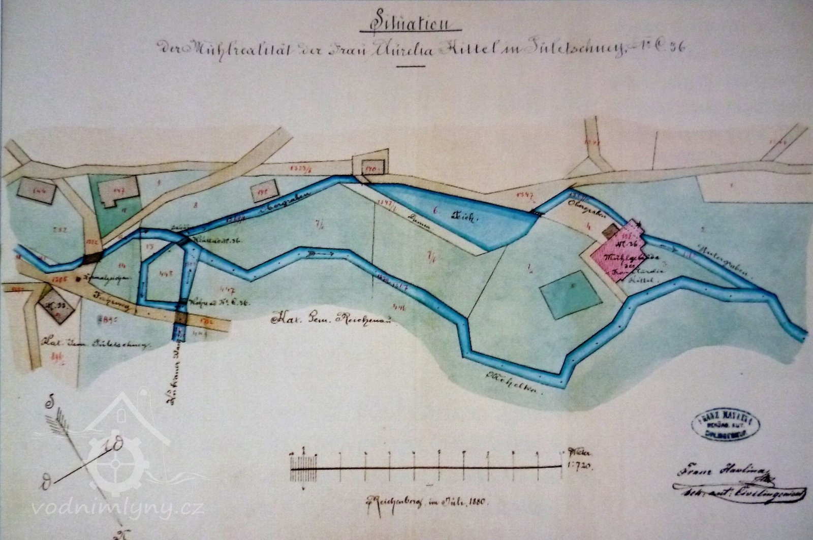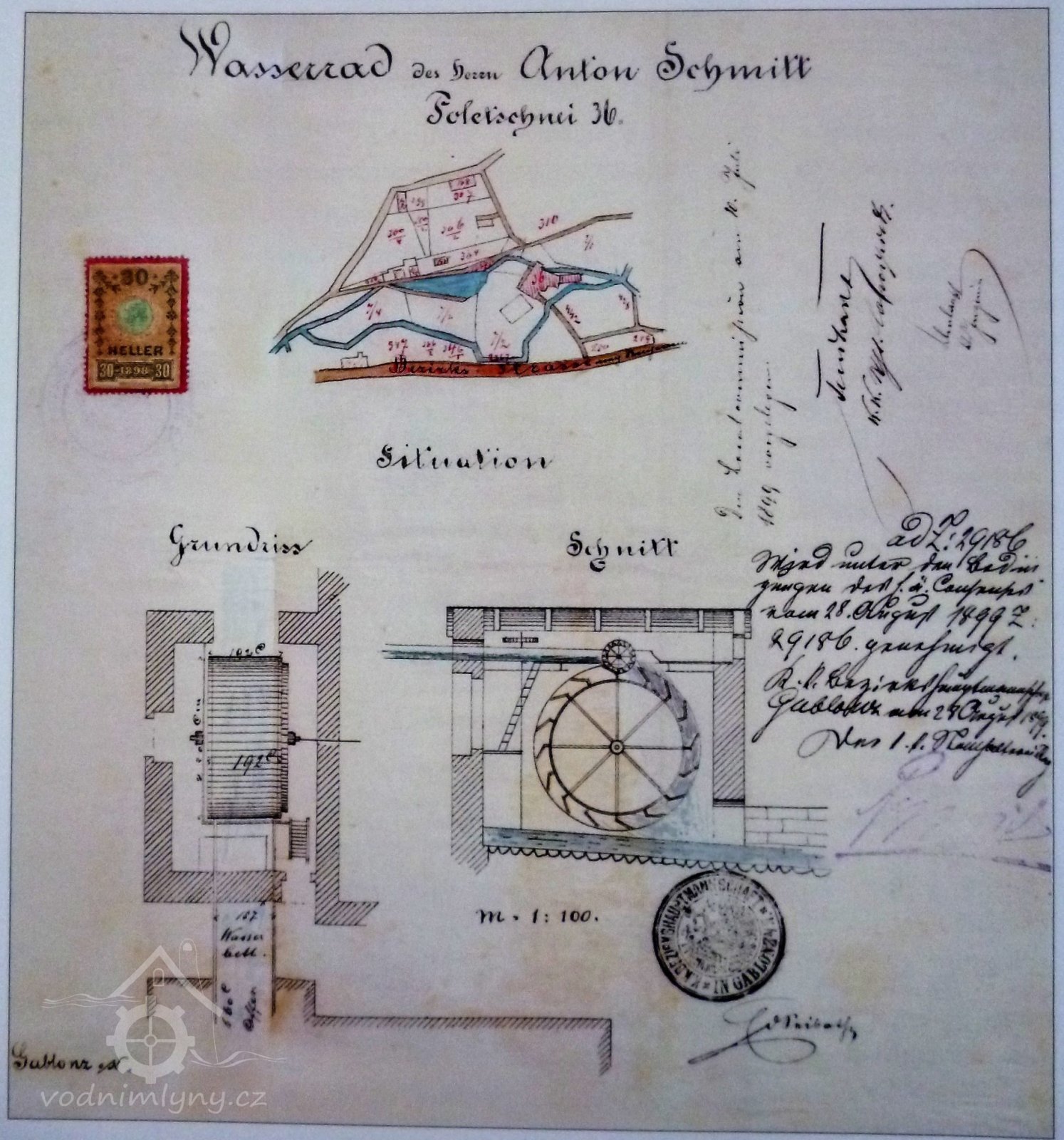PopisMlýn měl vodní kolo na vrchní vodu o průměru 3,98 m a výkonu 3 HP.