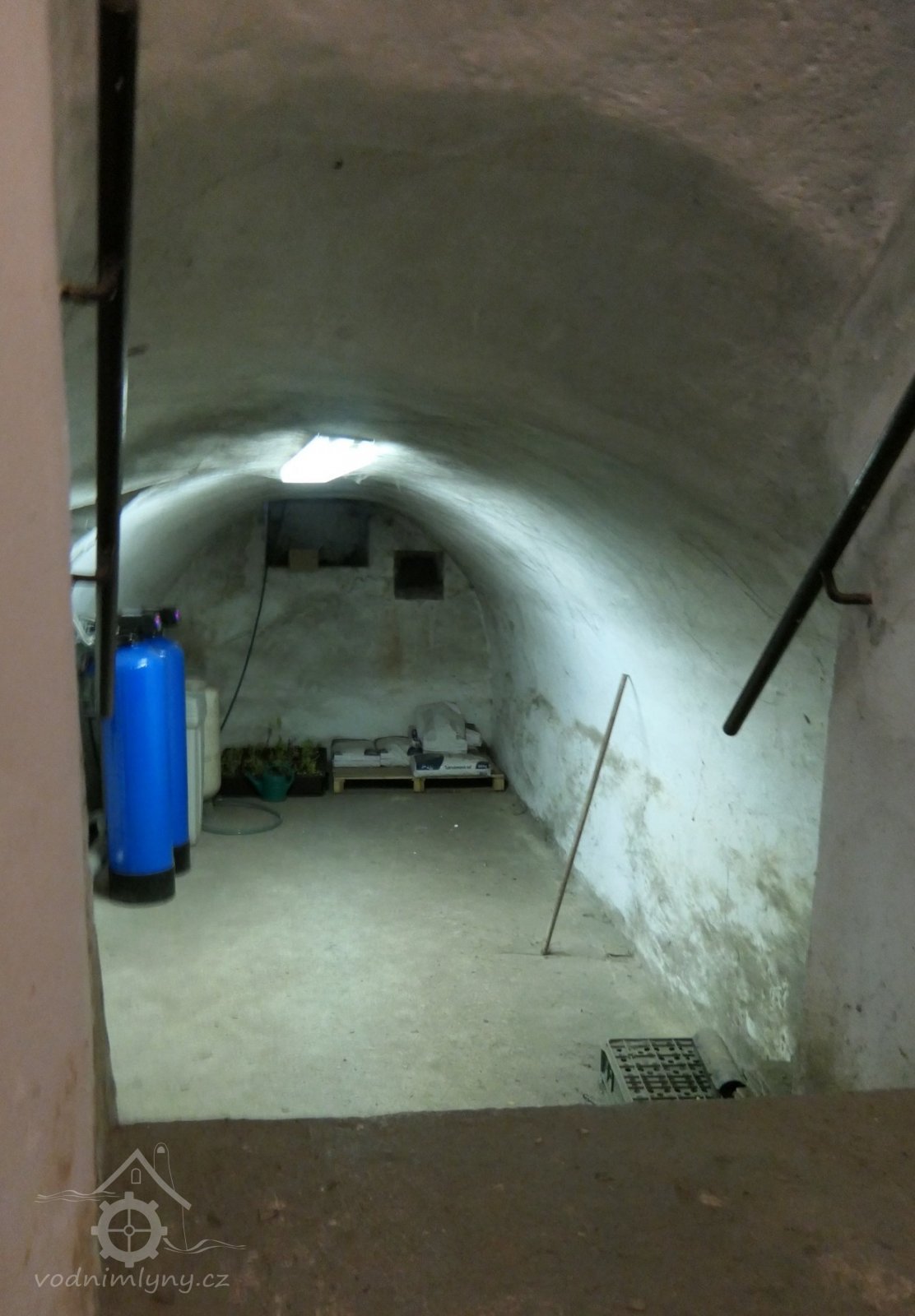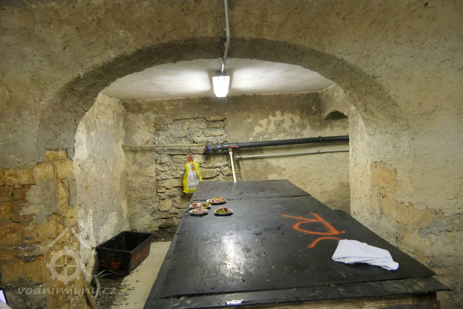 Potom jest mlejn z kamena na všechny čtyry strany vyzděný, s zděnou lednicí, do něho veřeje dřevěný od polední strany vyzděny s dveřmi na pantích.