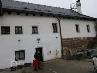 Z tý světnice k půlnoční straně veřeje dřevěny s dveřmi na pantích do komory roubený. V tý komoře okna, bez skel jedno k vejchodu s mřeží železnou a druhé na půl noci k lednici, prkny zapažené.