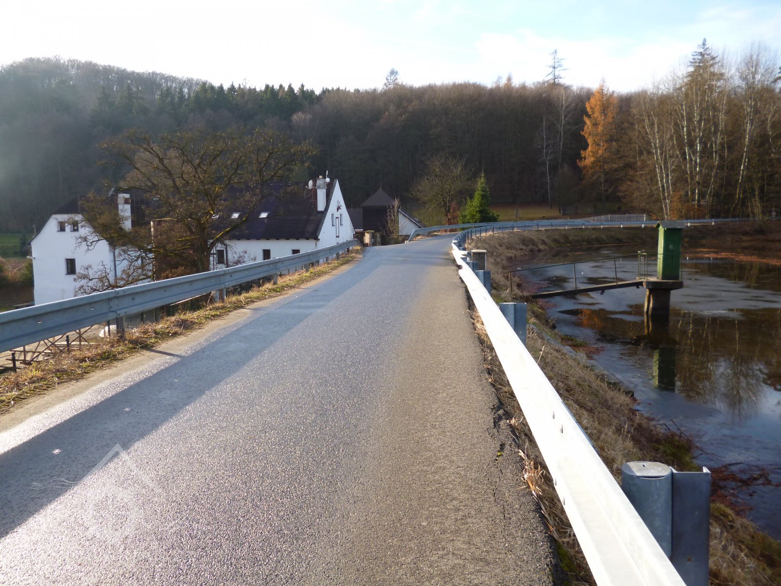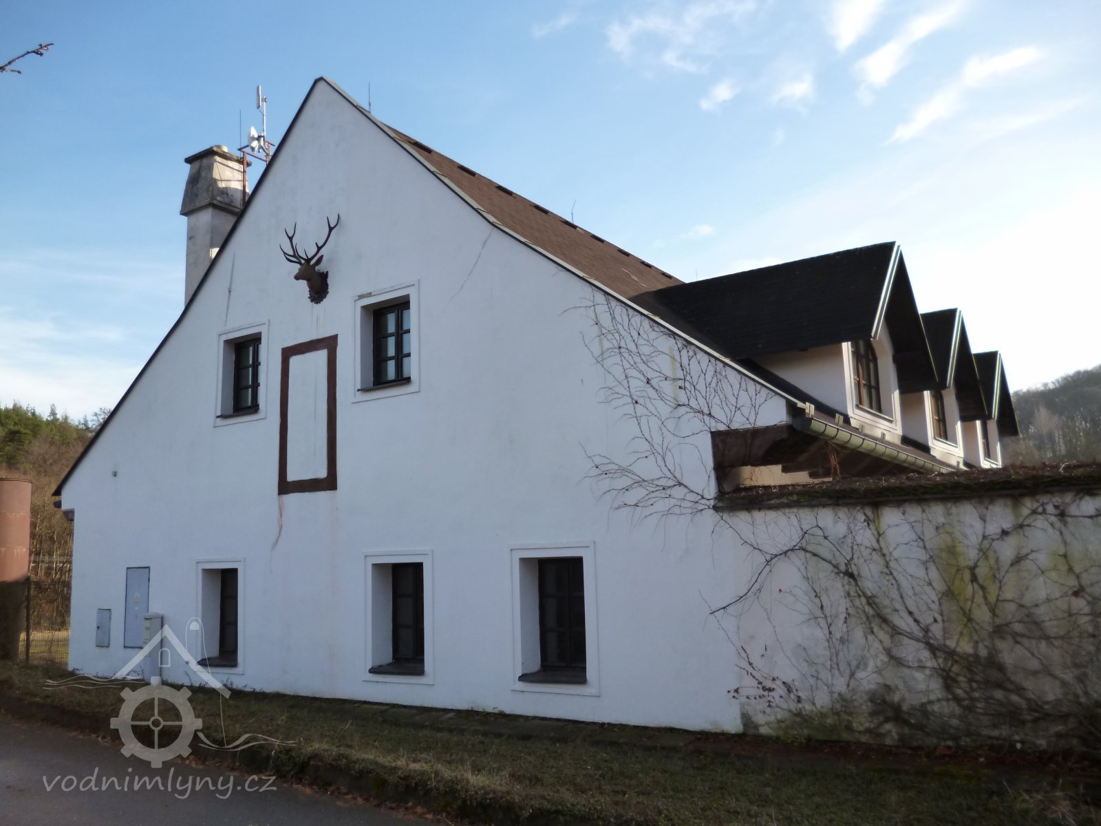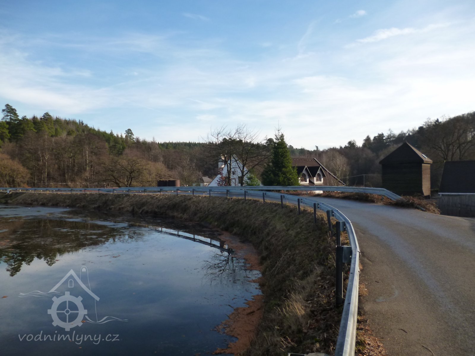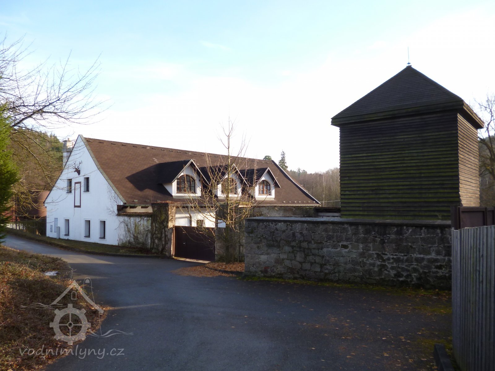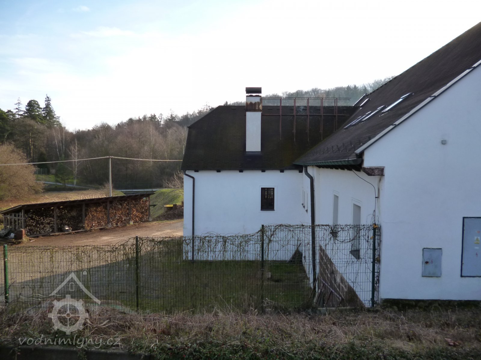 Před tím mlejnem při hrázi na polední straně větším dílem k západu jsou sroubeny dva chlívy pro dvanácte kusů dobytka hovězího, krovem a šindelem přikrytý. Item naproti těm chlívům krmník sroubený, též krovem a šindelem náležitě přikrytý.