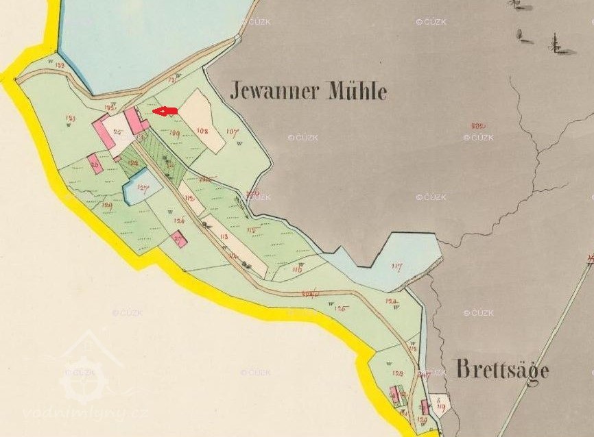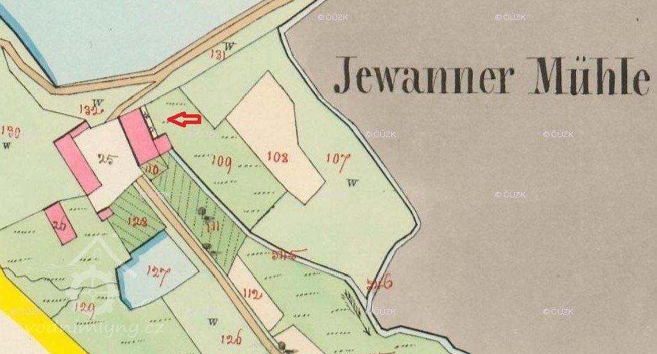 Ihned jakž z hráze rybníka Jevanského mlejnského se schází, přijde se k vantrokám, po kterýchž se voda žene do lednice zděné na kola mlejnský vodní a k valše soukenické.