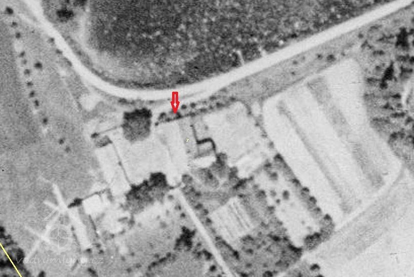 Při tom mlejně k vejchodní straně jest štít od kamena vyzděný a na západ toliko kus štítu kamenného se dvěmi okny bez skel, ostatek štítu prkny zapažený. Item menší štítek k straně půl noční nad lednicí, s jedním oknem.