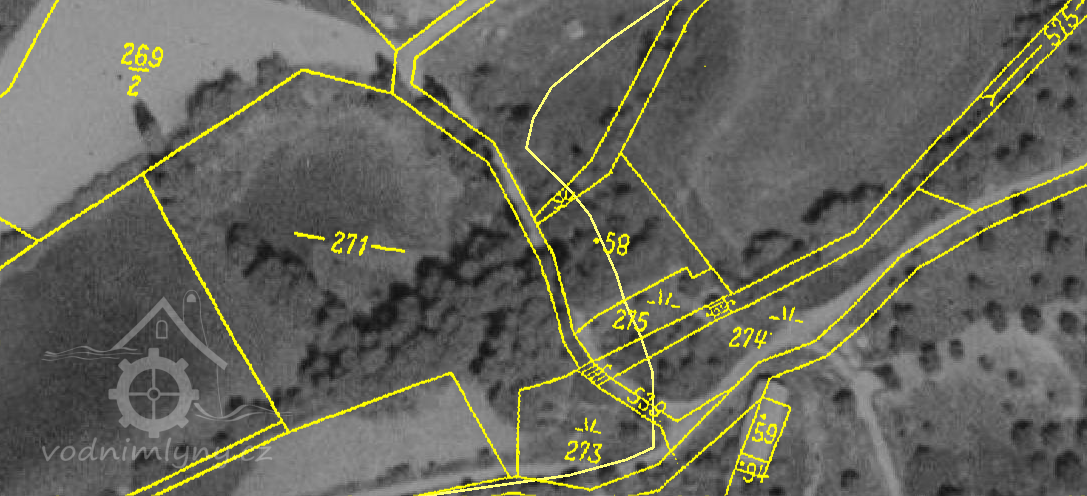 Na leteckém snímkování z 50. let budova mlýna již nestojí.
