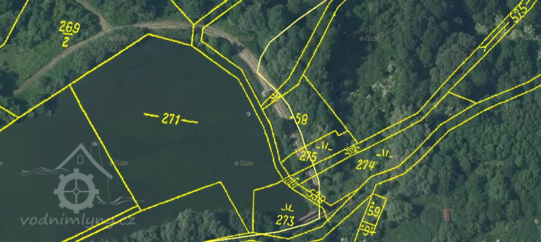 Nad mlýnem byl rybník (existuje dodnes), do kterého vtékal Jalový potok. Uprostřed hráze byla voda z rybníka vypouštěna na mlýnské kolo. Odtok od mlýna vedl zpět do Jalového potoka.