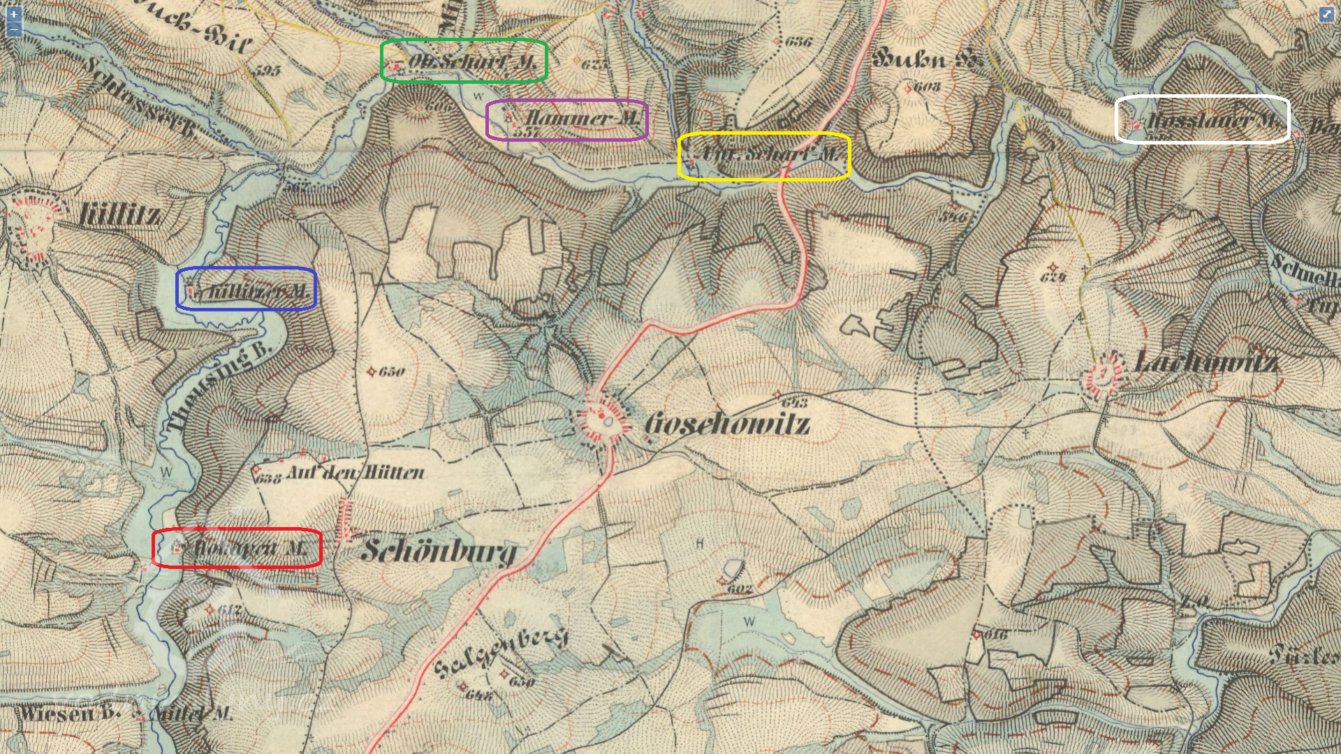 ve mlýně 4. října 1867 dva týdny po svém narození. V roce 1878 zde zemřel jakýsi Johann Huhs, který pracoval ve mlýně jako sluha. Do kdy byl hlavním mlynářem Johann, popřípadě kdy mlýn přešel na Franze Kunze (pravděpodobně jeho syna), nevíme. Franz Kunz měl