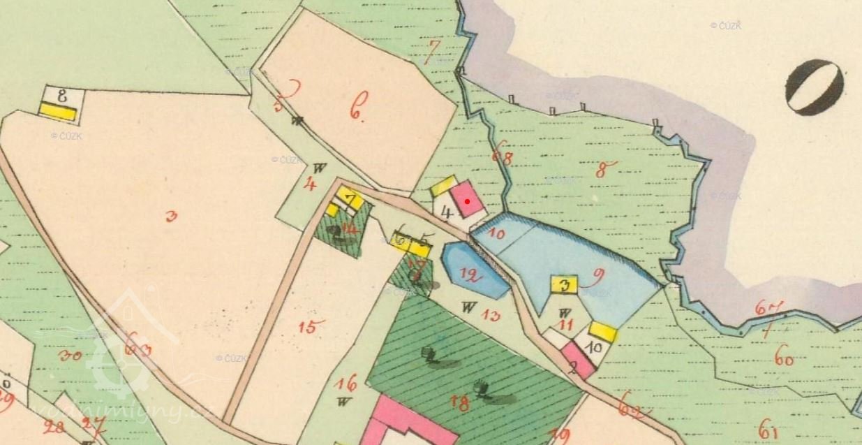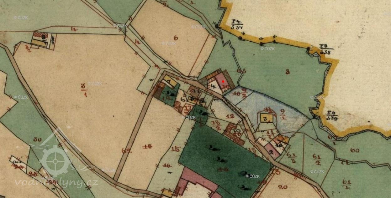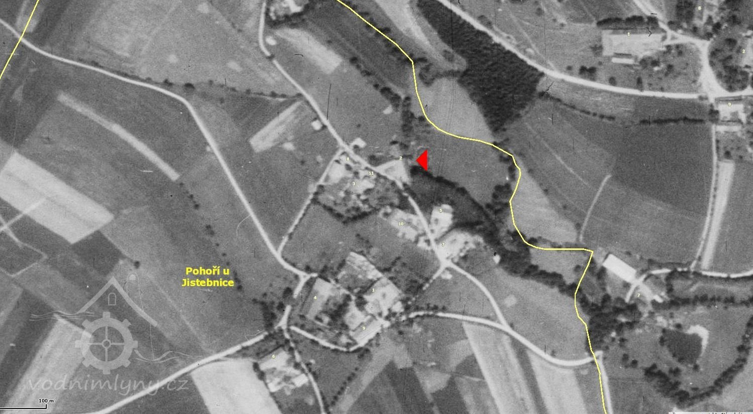 Tereziánský katastr český z roku 1757, p.č.1423 Pohoří dvůr, držitel Jan Vančura z Řehnic. Ve fasi uveden 1 zpustlý mlýnec o 1 kole a 1 stoupě na nestálé vodě bez pozemků.