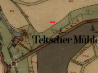 Mlýn vznikl již ve středověku a sloužil pro dnes již zaniklou ves Teleč (něm. Teltsch) s osadou Dlouhá Ves (Langendorf) a vedlejší vesnici Pávice (Pobitz). O jeho historii není nic bližšího známo, nejsou známa ani žádná vyobrazení. Do r. 1946 se jako poslední majitel uvádí Julius Glaser. Po odsunu německého obyvatelstva mlýn zanikl stejně jako vesnice, ze které dnes zbývají 2 stavení a několik rekreačních chat.
