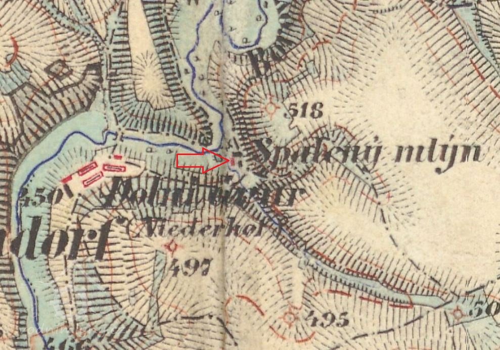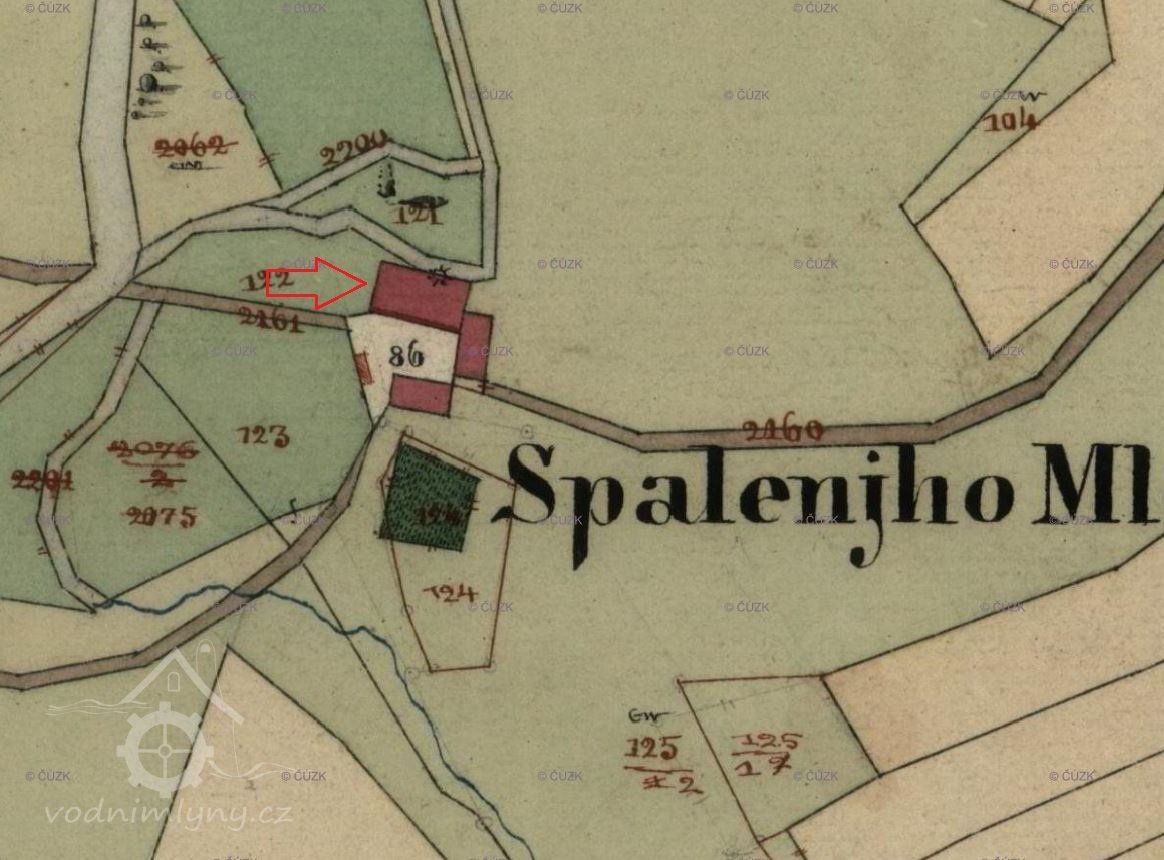 Mlýn je zaznamenán již na mapě I. vojenského mapování z let 1764 – 1768. Na mapách stabilního katastru z roku 1838 je zakreslen jako zděná obdélníková budova s dalšími dvěma menšími stavbami, kter= tvořily hospodářské zázemí mlýna. Samostatná obytná budova byla přistavěna později.