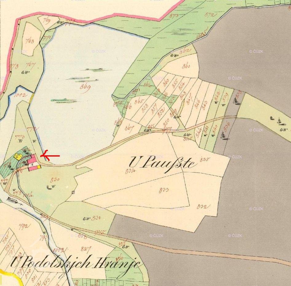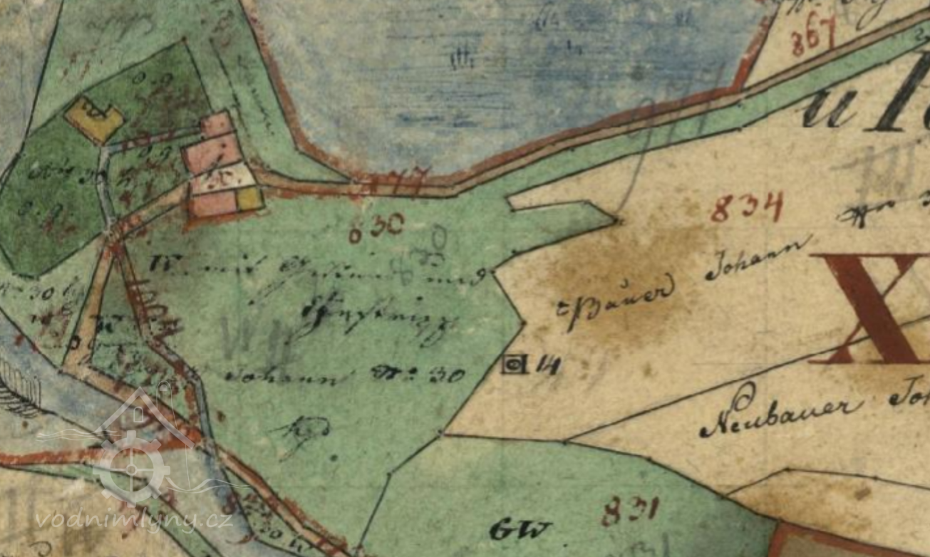 Mlýn je i na II. vojenském mapování a na císařském povinném otisku z roku 1824, kde má v katastru obce Louka číslo stavebního pozemku 1.
