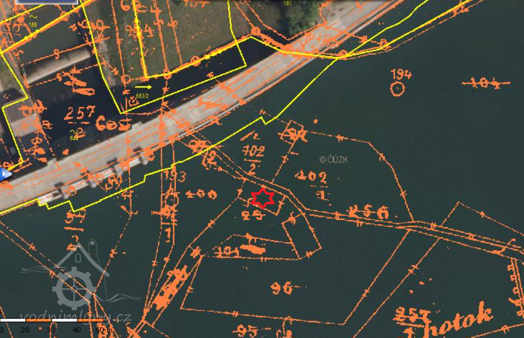 Na leteckém snímku 1950 již není patrný.