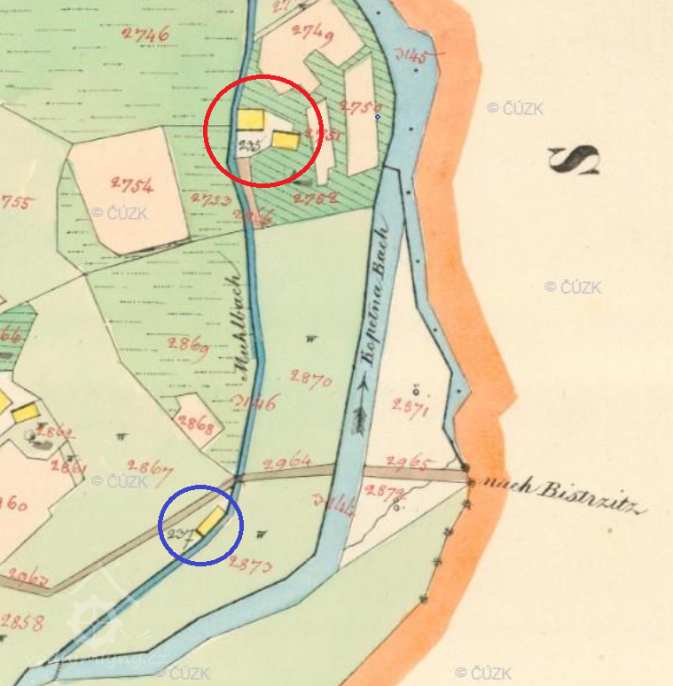 Jeden z mlýnů býval na potoku Kopytná v trati Do mlýnka, ve směru na Hrádek. Mlýn se nazýval U Sikory na Zaolziu (dnes U Ježowicza).