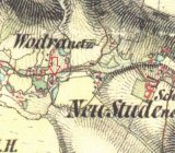 Dle vyobrazení na mapách stabilního katastru zděná budova obdélníkové půdorysu se dvěma přilehlými budova ze spalného materiálu na západní straně.