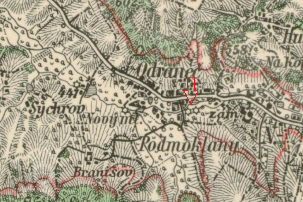 Zaniklý mlýn, u kterého byla později zřízena také pila, stál v obci Podmoklany, v části zvané Odraneč, na pravém břehu potoka Cerhovka.
